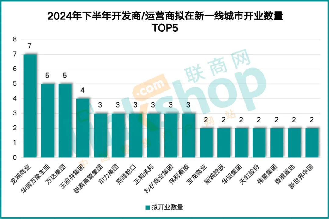 從15個新一線城市下半年擬開業(yè)商業(yè)項(xiàng)目的開發(fā)商/運(yùn)營商來看,名次靠前的仍以頭部商管企業(yè)為主,包括龍湖商業(yè)、華潤萬象生活、萬達(dá)集團(tuán)、王府井集團(tuán)、銀泰商管集團(tuán)等。