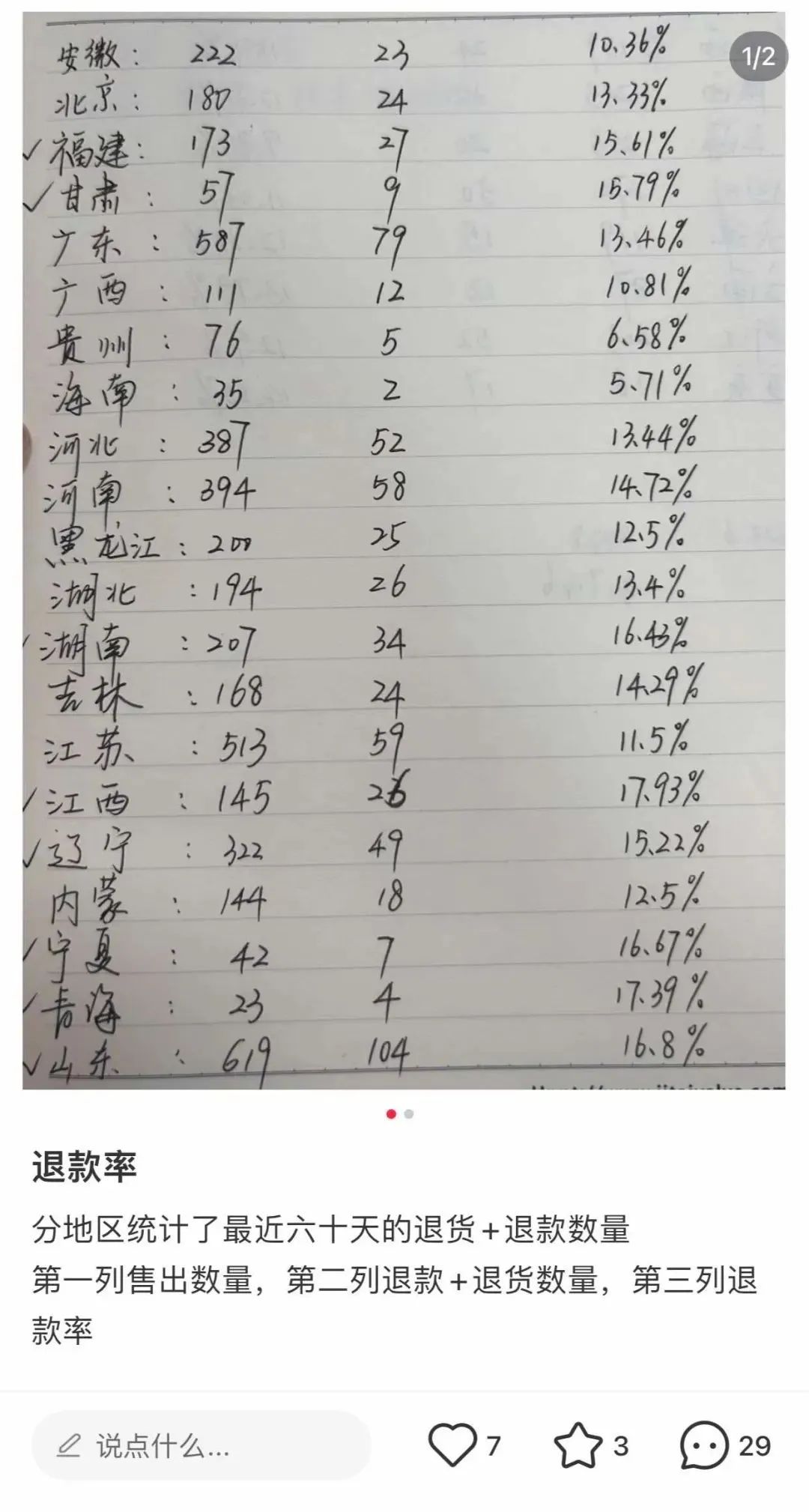 “生鮮類目是重災區(qū),有同行吐槽僅退款率最高能到30%,時不時碰到成群結隊來薅羊毛的!痹谌蕾u生鮮的阿文直言今年生意不好做,“僅退款把我們的利潤都吃掉了”。