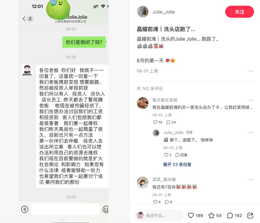 9天后,“JolieJolie愛上洗頭”的跑路消息就傳了出來。