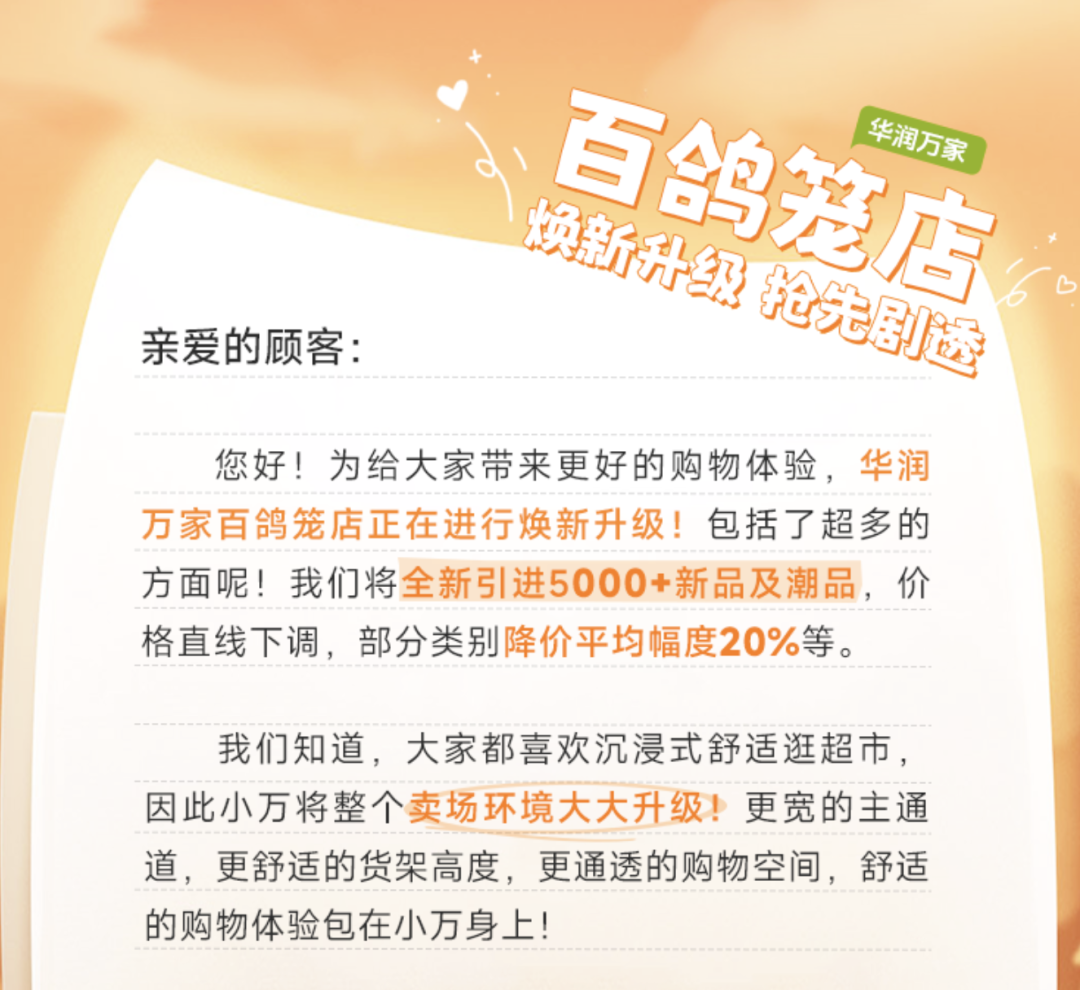 華潤萬家煥新升級,部分類別降價平均幅度20%