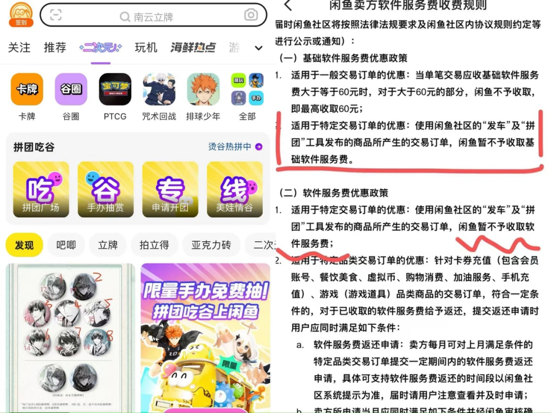 回首近兩年閑魚之變,自從2022年季山上任,就給閑魚定下了“社區(qū)”+“交易”雙輪驅(qū)動的戰(zhàn)略。2023年5月,閑魚更是升級了“海鮮市場”和“會玩”社區(qū),想靠著一群興趣達(dá)人來鞏固用戶之間的“江湖情誼”。如果說收取服務(wù)費是為了盤活已成形的“聚寶盆”,那對二次元交易等特定交易“網(wǎng)開一面”則或許不僅是為了提升新的造血能力,也是為了留一條退路——讓商業(yè)化更快一步,也盡量保證社區(qū)的調(diào)性。