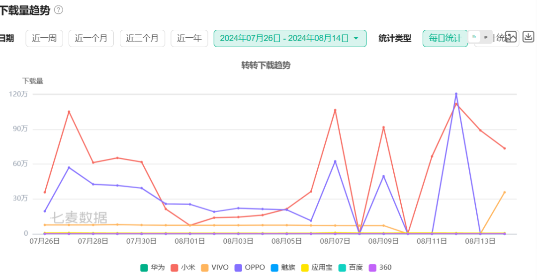 自閑魚公開新規(guī)后,轉(zhuǎn)轉(zhuǎn)的安卓端下載量迎來增長 圖片來源:七麥數(shù)據(jù)