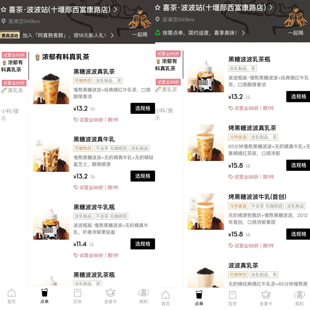 在這樣的趨勢(shì)下,喜茶卻反其道而行之,主動(dòng)做起了“減法”。在品類上,喜茶打造的喜茶·波波站,只聚焦黑糖波波奶茶單一品類,這也是喜茶最經(jīng)典和暢銷的產(chǎn)品線之一。