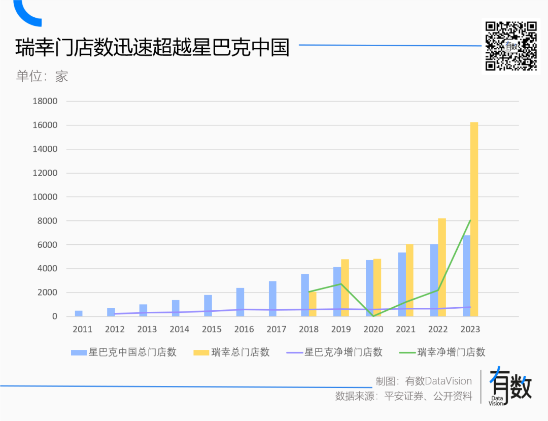 通過“低價占份額—規(guī);当尽M一步擴張”的思路,瑞幸在星巴克的盲區(qū)巡回開店,為萬千縣城群眾送上了人生第一杯咖啡。星巴克勇闖中國23年,才開出6000家店,瑞幸只用6年,就昂首踏入萬店俱樂部。