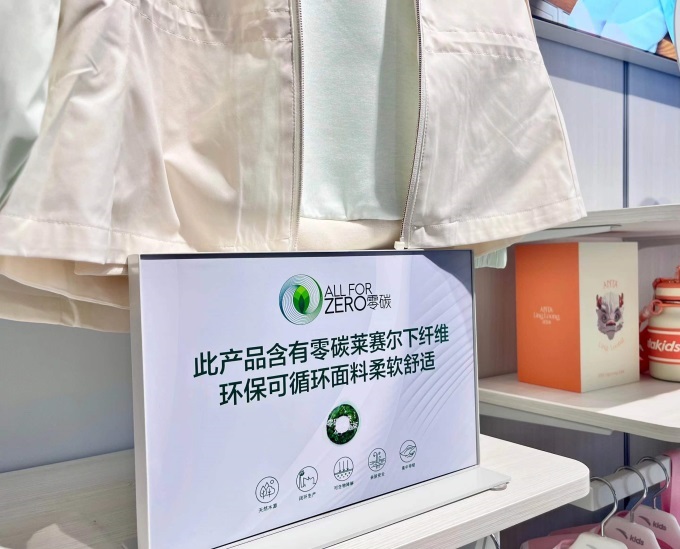 在慶春銀泰,不少參與“舊物循環(huán)”的品牌把回收箱擺在顯要位置。在服飾、運(yùn)動(dòng)品牌的柜臺(tái),幾位年輕消費(fèi)者正在饒有興致的聽導(dǎo)購(gòu)介紹環(huán)保面料。