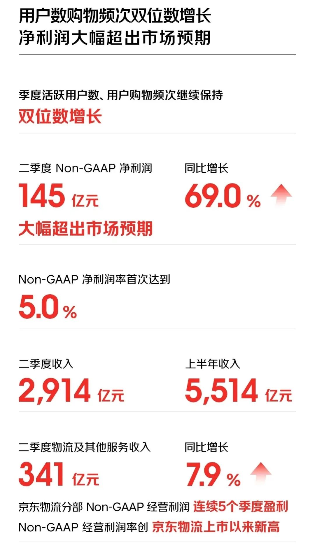 由此可知,從營(yíng)收和利潤(rùn)來(lái)看,京東的業(yè)績(jī)十分穩(wěn)健。本次還實(shí)現(xiàn)了歷史最高的單季度非 GAAP 凈利潤(rùn),堪稱是一個(gè)醒目的亮點(diǎn)。