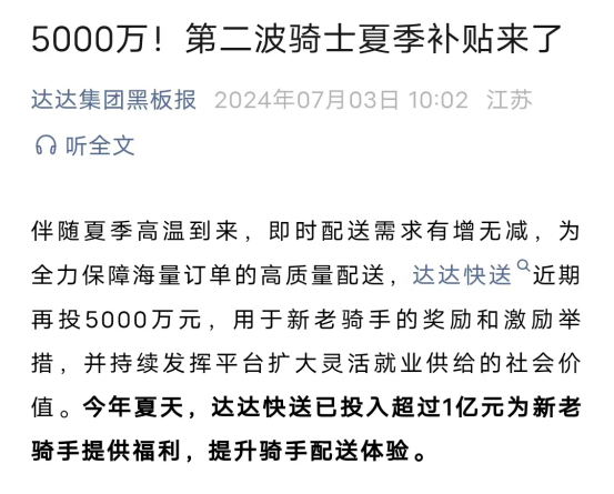 例如,達達快送投入兩次五千萬、一共一個億用于騎手獎勵,順豐同城設(shè)立了500萬元的委屈關(guān)懷基金,以提高騎手的工作滿意度、忠誠度。