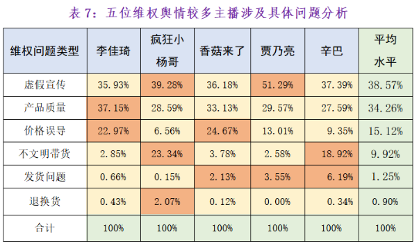 在消費者網(wǎng)等機構(gòu)聯(lián)合發(fā)布的《直播帶貨消費維權(quán)輿情分析報告(2023)》中,李佳琦、小楊哥等都被點名了。其中,虛假宣傳和價格誤導(dǎo)等問題比較突出。