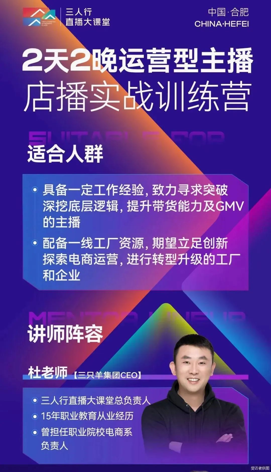 “三人行直播大課堂”是基于“萬羊計劃”開啟的,意味著三只羊未來要孵化1萬名主播,組成1000個垂類直播間。