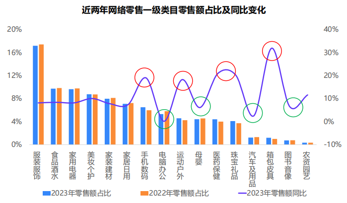 2023年網(wǎng)絡(luò)零售品類(lèi)交易數(shù)據(jù)顯示,排次靠前的品類(lèi)中,服裝鞋帽、針織品、化妝品、金銀珠寶中女性受眾形象呼之欲出;而除此以外的熱門(mén)品類(lèi),如日用品、家用電器、糧油食品、娛樂(lè)用品甚至是汽車(chē)等以家庭為主要消費(fèi)單位的品類(lèi),買(mǎi)/不買(mǎi)、買(mǎi)哪個(gè)的決定權(quán)往往也掌握在女性手里。