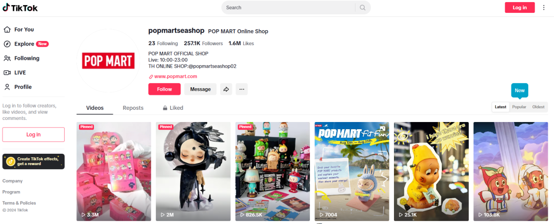 粉絲量的差異,為泡泡瑪特借助盲盒開箱進(jìn)行病毒式傳播營銷,在全球市場持續(xù)提高知名度奠定基礎(chǔ)。今年4月,泰國明星麗莎(Lisa)在Instagram上分享了一張自己與LABUBU的照片,這讓LABUBU在東南亞人氣飆升。旗艦店排起長隊,直播期間產(chǎn)品立即售罄。