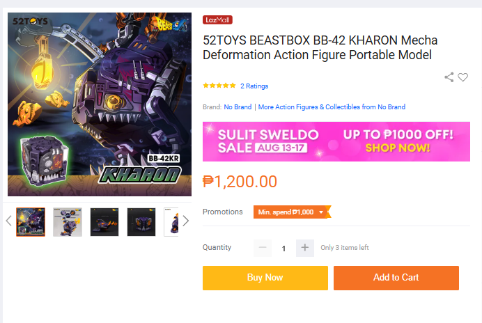 不僅僅是在Shoppe上,在Lazada上52TOYS BB-42KHARON機(jī)甲變形可動人偶便攜模型產(chǎn)品評論量僅有2條,有限的評論側(cè)面說明產(chǎn)品動銷不佳。