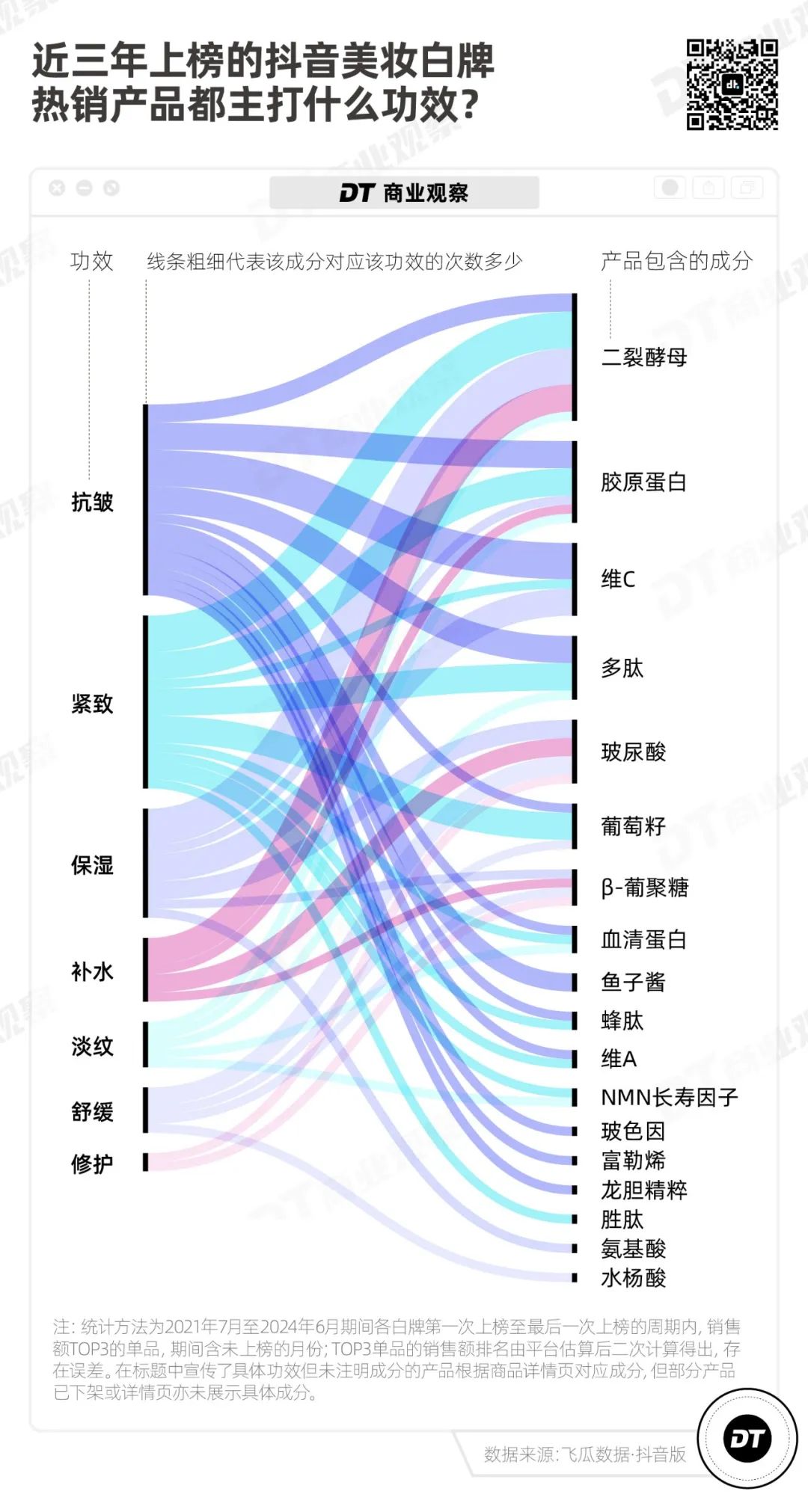 如果認(rèn)真復(fù)盤(pán)美妝白牌們的“發(fā)家史”,會(huì)發(fā)現(xiàn)它們也經(jīng)歷過(guò)一段時(shí)間的“摸爬滾打”,對(duì)不同功效都廣撒網(wǎng),才最終在抖音驗(yàn)證出專(zhuān)注美白和抗皺的生意模型。