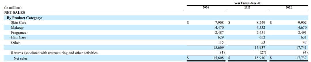 首先,護膚業(yè)務在2024財年凈銷售額同比下滑4%至79.08億美元(約合人民幣564.78億元),下滑的主要原因是“中國大陸整體高端美容產品持續(xù)疲軟”,雅詩蘭黛、倩碧和Dr.Jart+的凈銷售額均有所下降。不過,海藍之謎實現(xiàn)高個位數(shù)增長、The Ordinary呈兩位數(shù)的增長。