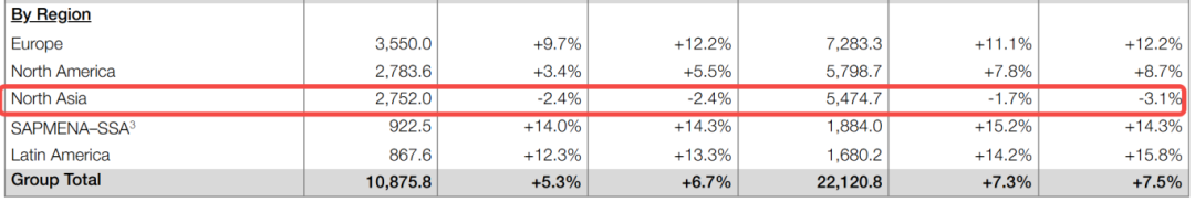 根據(jù)歐萊雅財(cái)報(bào),北亞地區(qū)早在今年第一季度就已經(jīng)陷入負(fù)增長(zhǎng),銷售額同比下降1.1%,而第二季度降幅進(jìn)一步擴(kuò)大至2.4%。