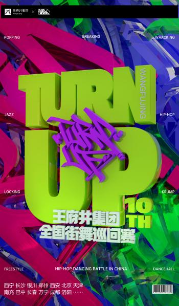 8-9月期間王府井集團將結(jié)合潮流文化、時尚運動,舉辦王府井集團全國街舞巡回賽——TURN UP亞洲街舞大賽,在全國13城開啟13站專業(yè)賽事。