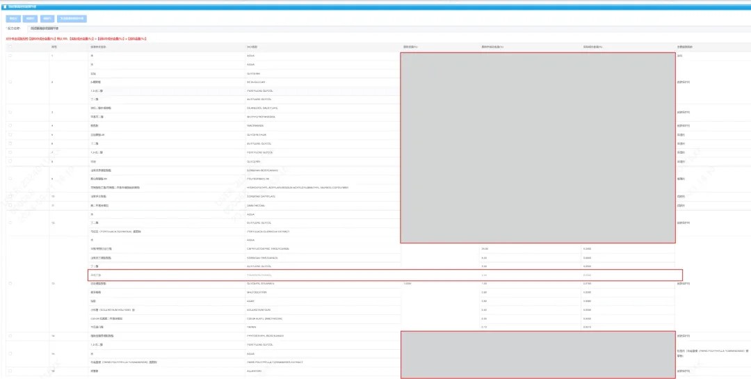 青眼注意到,根據(jù)《化妝品標(biāo)簽管理辦法》,以復(fù)配或者混合原料形式進行配方填報的,應(yīng)當(dāng)以其中每個成分在配方中的含量作為成分含量的排序和判別是否為微量成分的依據(jù)。