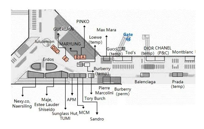虹橋機場T2“一線品牌大道”的布局 圖片來源:moodiedavittreport