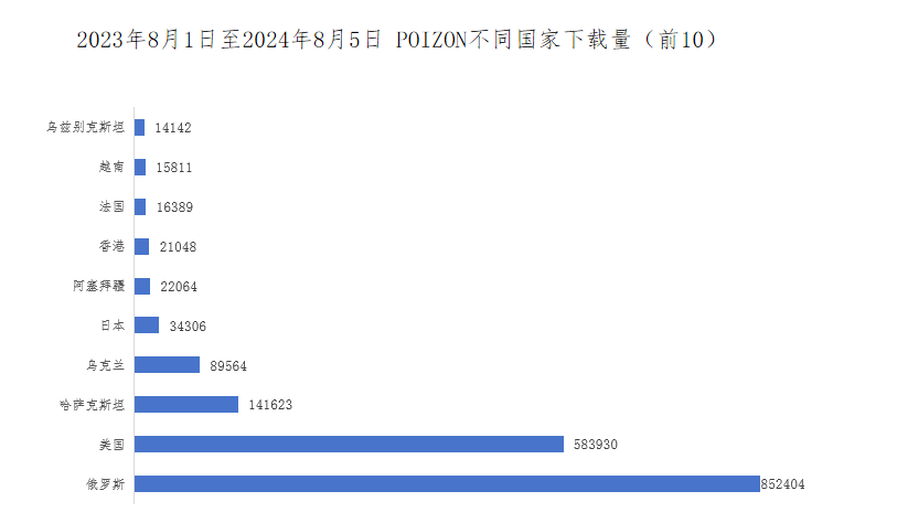 POIZON在東南亞多國(guó)下載量相對(duì)低迷,Tower數(shù)據(jù)顯示,2023年8月1日至2024年8月5日POIZON在印尼、馬來(lái)西亞、泰國(guó)、菲律賓、越南累計(jì)下載量分別為854、6267、7721、7952、15811,多國(guó)一年時(shí)間下載量不足2萬(wàn)。