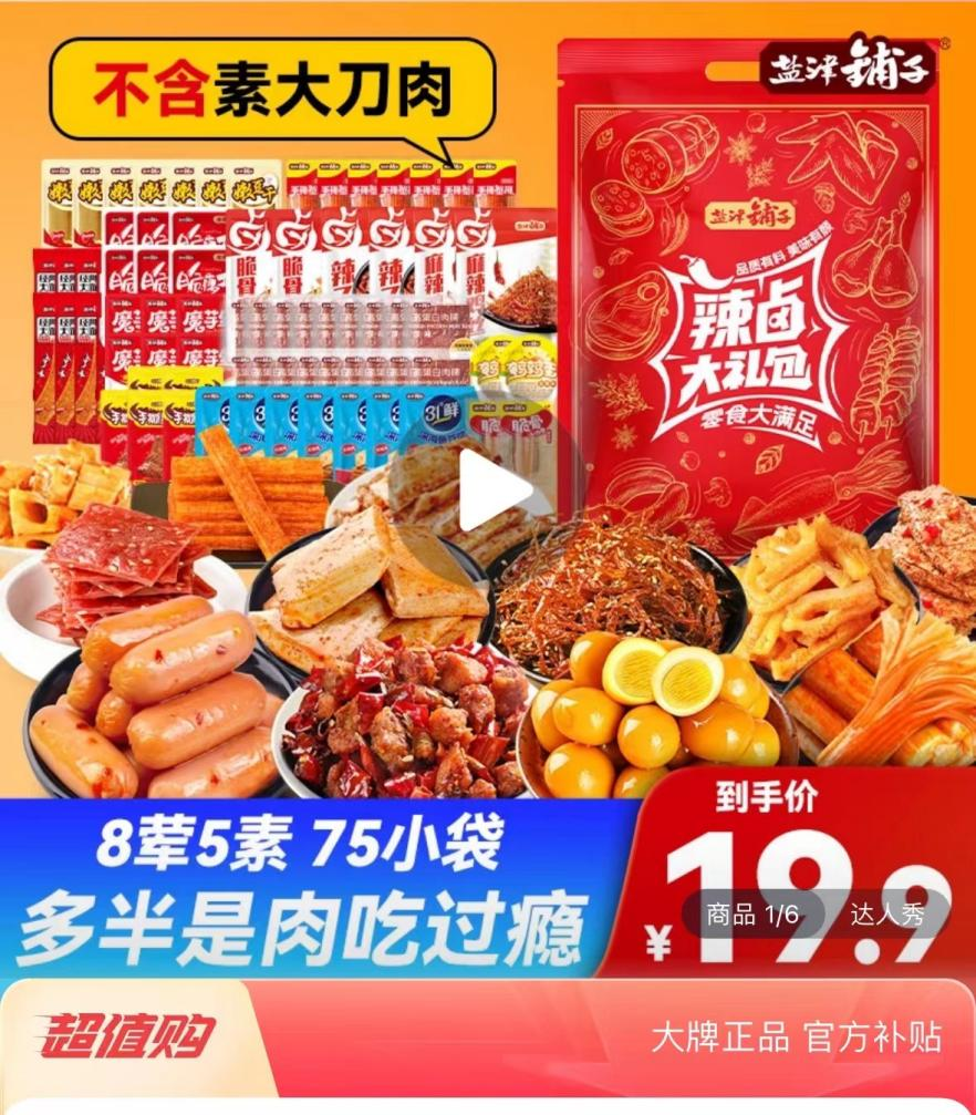 在電商領(lǐng)域,鹽津鋪?zhàn)哟虺鰞r(jià)格牌,將“極致性?xún)r(jià)比”作為品牌傳播的核心關(guān)鍵詞。通過(guò)與平臺(tái)和主播的合作進(jìn)行種草營(yíng)銷(xiāo),推出的9.9元價(jià)格線產(chǎn)品,如蛋黃鵪鶉蛋、大魔王毛肚、手撕素牛肉等大單品,以及19.9元75包的大禮包等優(yōu)惠組合,提升品牌影響力和渠道勢(shì)能。