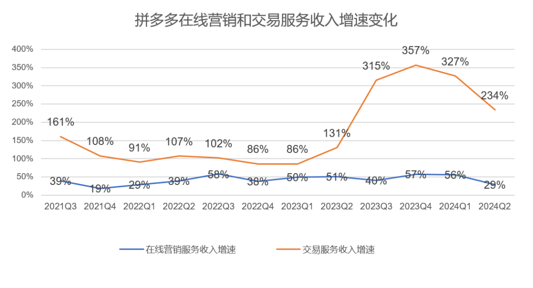 拼多多在線營銷和交易服務(wù)收入增速變化