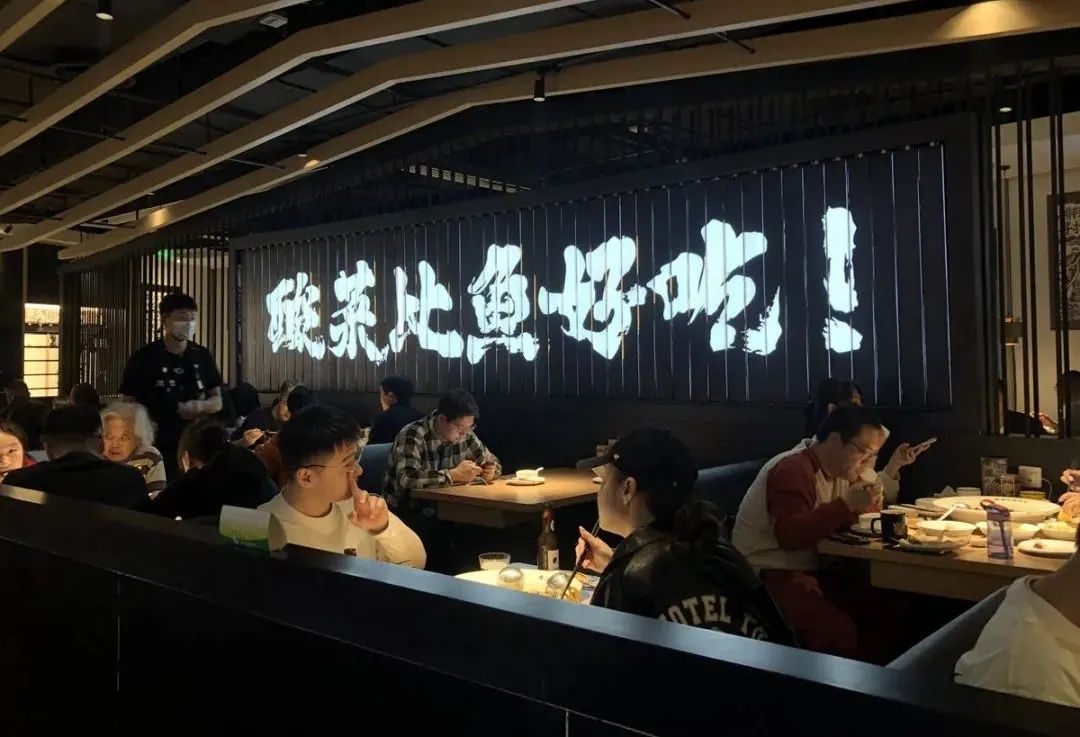 在太二酸菜魚就餐,消費(fèi)者往往會(huì)看到一則廣告語,上面赫然寫著:“酸菜比魚好吃。”