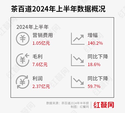 成本費(fèi)用大增、毛利下滑,最終茶百道2024年上半年的利潤(rùn)僅有2.37億元,同比去年的5.88億元,降幅達(dá)59.7%。