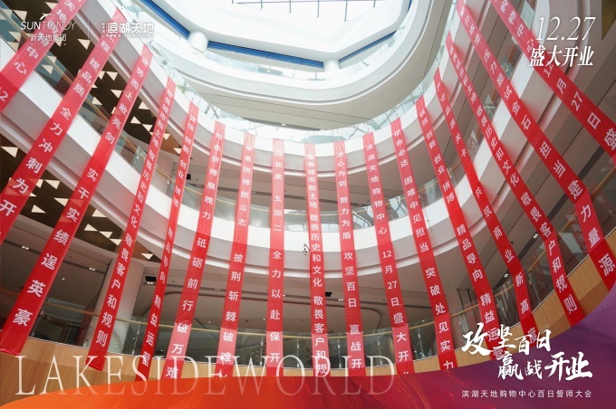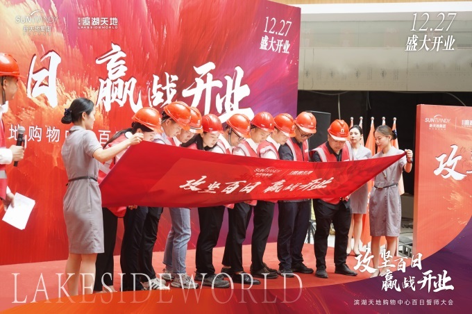 8月28日,在距離濱湖天地購物中心開業(yè)百日之際,濱湖天地購物中心百日誓師大會隆重登場,活動在濱湖天地購物中心2號中庭舉行,濱湖天地開發(fā)及運營團(tuán)隊統(tǒng)一著裝,精神飽滿,斗志昂揚。