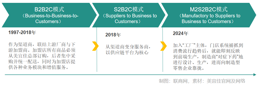 從內(nèi)核上,美宜佳的供應(yīng)鏈經(jīng)過(guò)了三個(gè)階段: