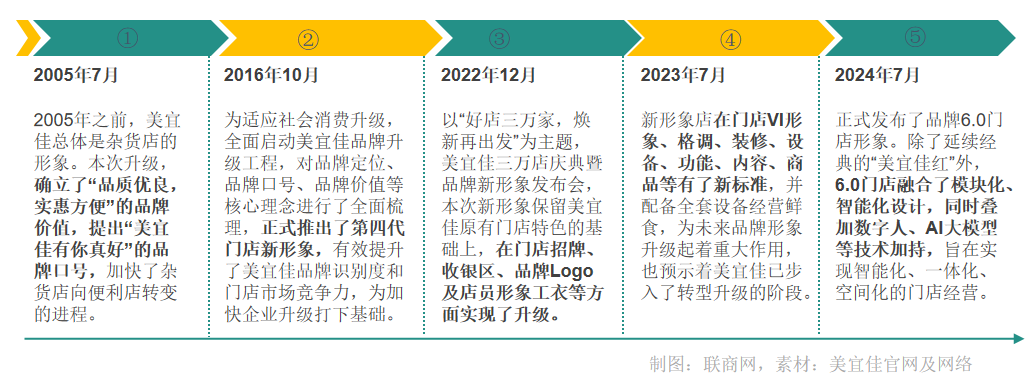 適應(yīng)發(fā)展需求,美宜佳的門(mén)店,也從形象到功能上,經(jīng)歷了約6次迭代升級(jí)。2024年7月,美宜佳正式發(fā)布了品牌6.0門(mén)店,一時(shí)間也引起了行業(yè)的探討。