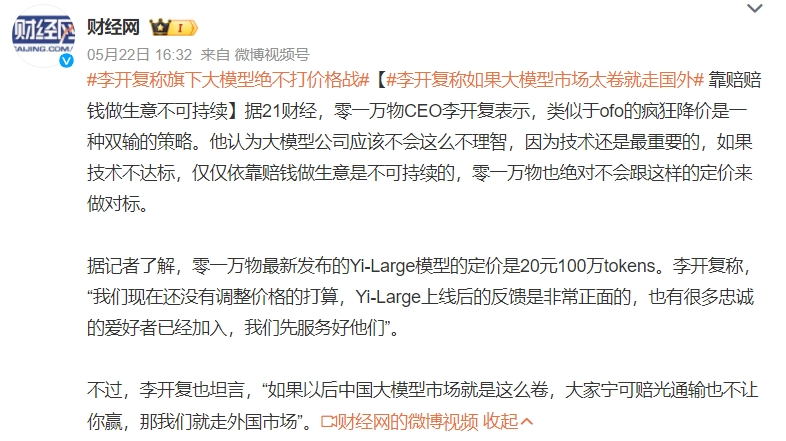 零一萬物CEO李開復(fù)明確認(rèn)為類似于ofo的瘋狂降價(jià)是一種雙輸?shù)牟呗。百川智能CEO王小川也曾表示,現(xiàn)階段大模型燒錢獲客不僅導(dǎo)致企業(yè)資金鏈緊張,還可能因?yàn)檫^度依賴外部投資而失去獨(dú)立發(fā)展的能力。