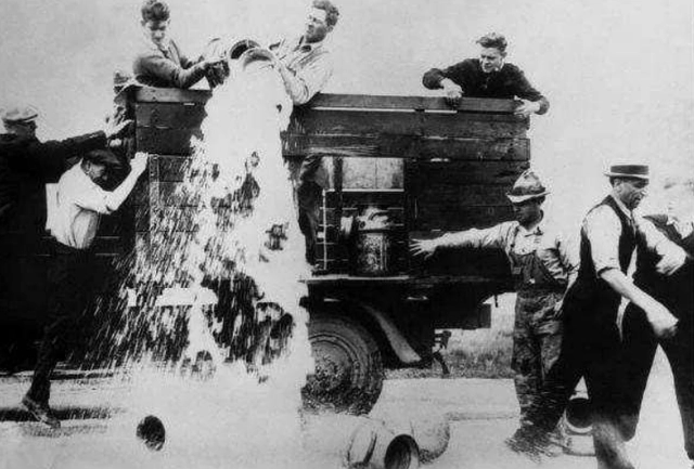 1934年1月,在美國伊利諾伊州芝加哥,上千奶農(nóng)封鎖了公路,通過“攔路倒奶”,傾倒了超過10萬磅其他奶農(nóng)的牛奶,隨后,加利福尼亞州、威斯康星州、愛荷華州也相繼跟上,這就是歷史上著名的“倒牛奶事件”。