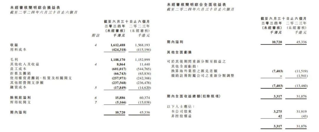 財報顯示,2024年上半年,太興集團營收同比增長2.82%至16.13億港元,凈利潤為1072.00萬港元,同比下跌了76.35%。