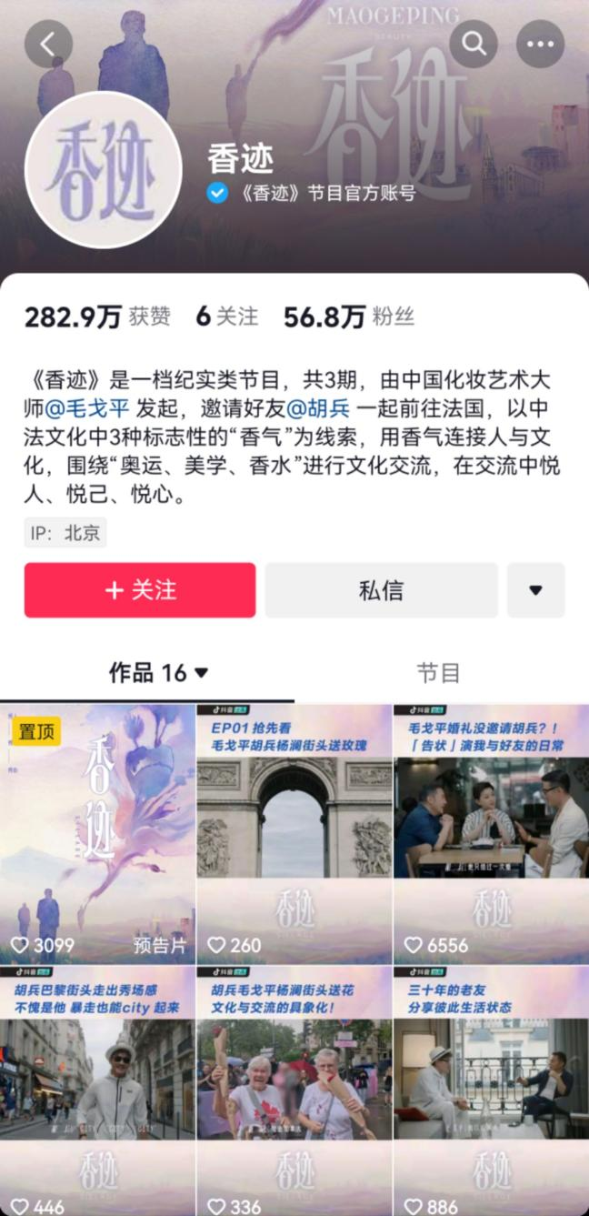 青眼號(hào)外注意到,毛戈平本人抖音賬號(hào)發(fā)布了一檔名為《香跡》的節(jié)目視頻。據(jù)該節(jié)目官方賬號(hào)顯示,在節(jié)目中毛戈平以中法文化中3種標(biāo)志性的“香氣”為線索,圍繞“奧運(yùn)、美學(xué)、香水”進(jìn)行文化交流。因此,也有行業(yè)人士推測(cè)此舉是在為新上市的香水提前造勢(shì)。