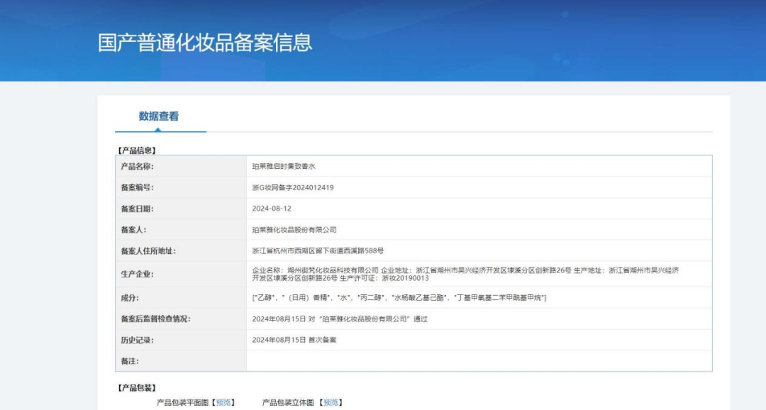 值得注意的是,青眼號(hào)外發(fā)現(xiàn),這是珀萊雅自2019年備案海洋星空香水、月影星辰海洋香水等4款香水以來(lái),時(shí)隔五年再次備案香水。目前,上述4款香水均已注銷(xiāo)。換言之,珀萊雅現(xiàn)在僅有一款香水備案。