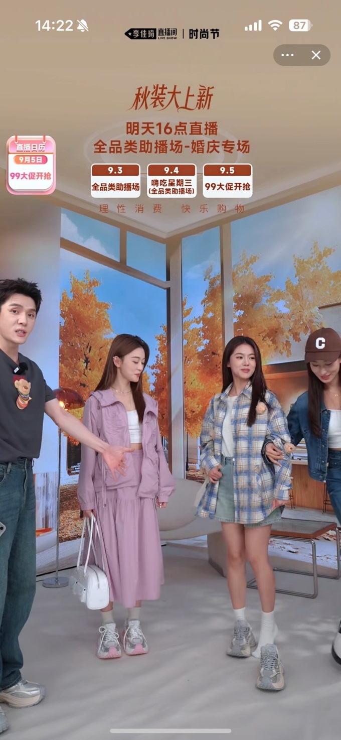 李佳琦直播間模特上身展示時尚單品及風(fēng)格穿搭