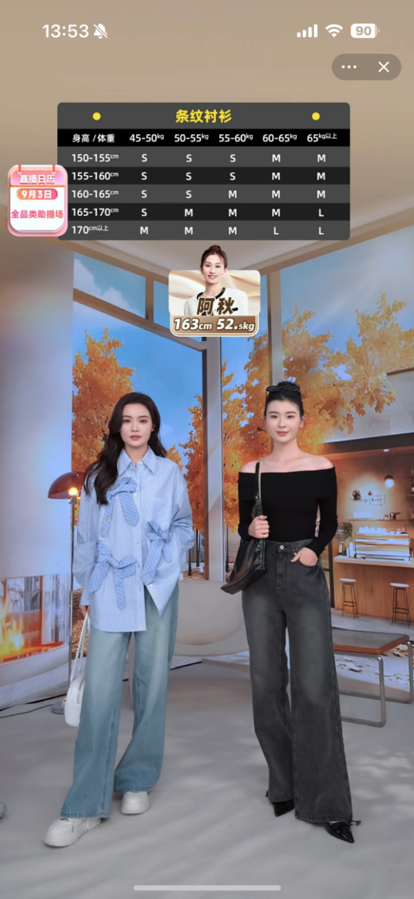 與此同時,美ONE旗下直播間還會配置不同身材的服裝展示模特,為用戶選購服裝產(chǎn)品帶來更多實際參考。