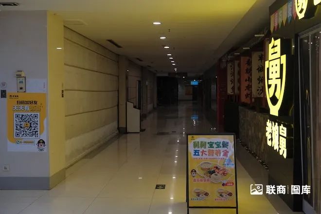 進(jìn)入二樓,只有一家老娘舅營業(yè)中,其他如新白鹿等餐廳均已關(guān)閉,走進(jìn)去更是一片漆黑。