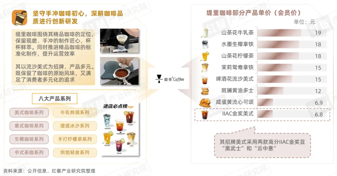 其中,緹里咖啡是創(chuàng)立于廣州的精品咖啡連鎖品牌。其踐行“以做精品咖啡的態(tài)度,做—杯大眾喜歡的咖啡”的品牌理念,采購全球咖啡豆產(chǎn)區(qū)的優(yōu)質(zhì)豆源。緹里咖啡立足精品水平做研發(fā),守護(hù)咖啡本心,形成了美式咖啡系列、意式咖啡系列等八大產(chǎn)品系列。