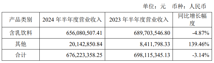 根據(jù)上半年財(cái)報(bào)顯示,李子園在報(bào)告期內(nèi)營(yíng)收6.79億元,對(duì)比去年同期減少-3.08%。光看營(yíng)收,在經(jīng)濟(jì)下行周期中,作為一家以甜牛奶為主要大單品的區(qū)域性飲料品牌,李子園還能保持相對(duì)穩(wěn)定的營(yíng)收實(shí)屬不易。