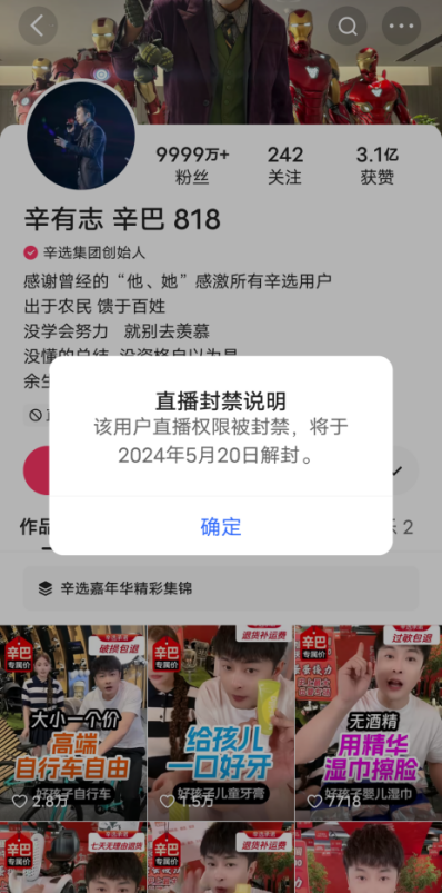 不過(guò),這次封禁也沒(méi)有持續(xù)很久;之后,辛巴的快手號(hào)直播權(quán)限于5月20日解封。值得一提的是,在解封前一天,由辛巴創(chuàng)立的辛選集團(tuán)發(fā)布了一則致歉聲明,“辛選旗下主播辛巴在2024年4月20日的直播中,因未能很好控制情緒,發(fā)表了有損快手形象的不當(dāng)言論。對(duì)此我們深表歉意!”
