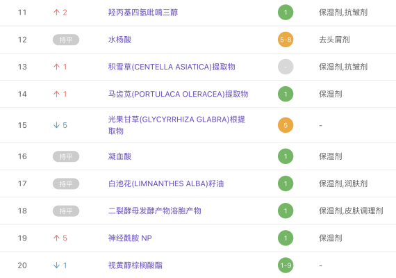 美麗修行大數(shù)據(jù)顯示,在2024年上半年(1-6月)環(huán)比2023年下半年(7-12月)的對比中,市場上的化妝品熱門成分榜單變化并不明顯,前9名包括透明質(zhì)酸鈉、維生素E、煙酰胺、泛醇等原料熱度持續(xù),依克多因、波色因、積雪草這些傳統(tǒng)熱門成分的熱度還在持續(xù)提升。