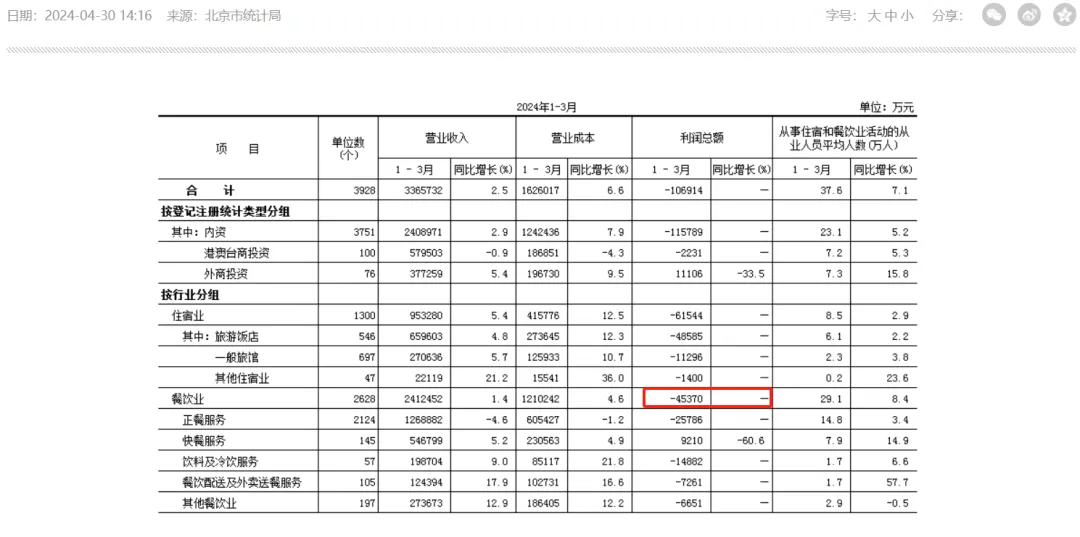 就餐飲的利潤(rùn)數(shù)據(jù)來(lái)看,北京上半年正餐服務(wù)出現(xiàn)較大虧損,快餐、飲料及配送、餐飲配送等尚可盈利。