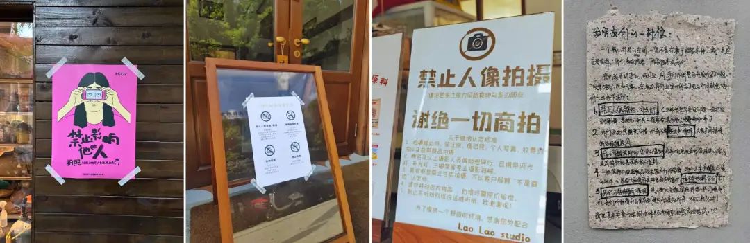 一個趨勢是,越來越多的咖啡店,尤其是那些追求安靜、品味的特色小店,正在放棄所謂的“潑天流量”,即通過吸引網(wǎng)紅打卡帶來的更多的商業(yè)利潤,這些店鋪在門口設(shè)立了“店規(guī)”,以防止拍照打卡行為擾亂店內(nèi)的氛圍。