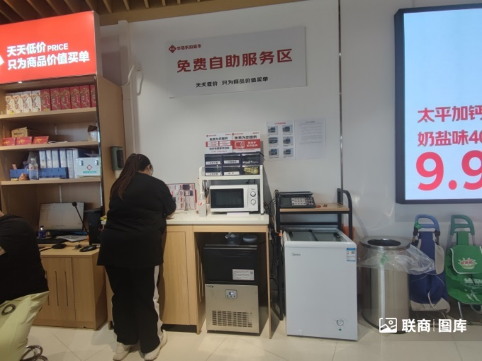 此外,門店出口處設置有服務臺和免費自助服務區(qū),提供一次性手套、筷子、吸管、紙巾、冰袋等用品,也為顧客提供微波爐加熱服務。