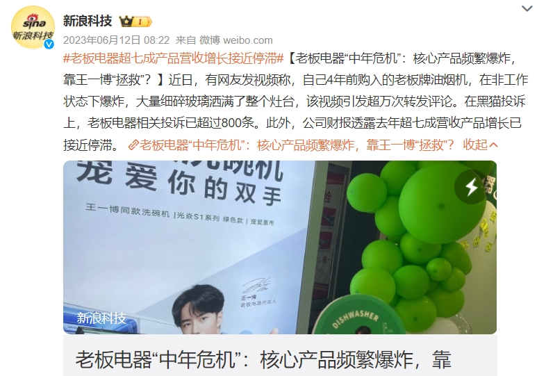 去年6月,還有網(wǎng)友發(fā)視頻稱,自己4年前購入的老板牌油煙機,在非工作狀態(tài)下爆炸,大量細碎玻璃灑滿了整個灶臺,該視頻引發(fā)廣泛熱議。據(jù)“趣解商業(yè)”了解,在黑貓投訴、小紅書以及西瓜視頻等平臺上,老板電器產(chǎn)品爆炸的案例并不鮮見,除吸油煙機外,會“爆炸”的產(chǎn)品還涉及燃氣灶等。