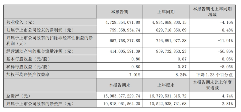 近日,廚電行業(yè)龍頭企業(yè)老板電器發(fā)布了上半年業(yè)績報告;老板電器財報顯示,上半年實現(xiàn)營收47.29億元,同比下滑4.16%;歸母凈利潤7.59億元,同比下滑8.48%;扣非凈利潤6.58億元,同比下降11.91%。