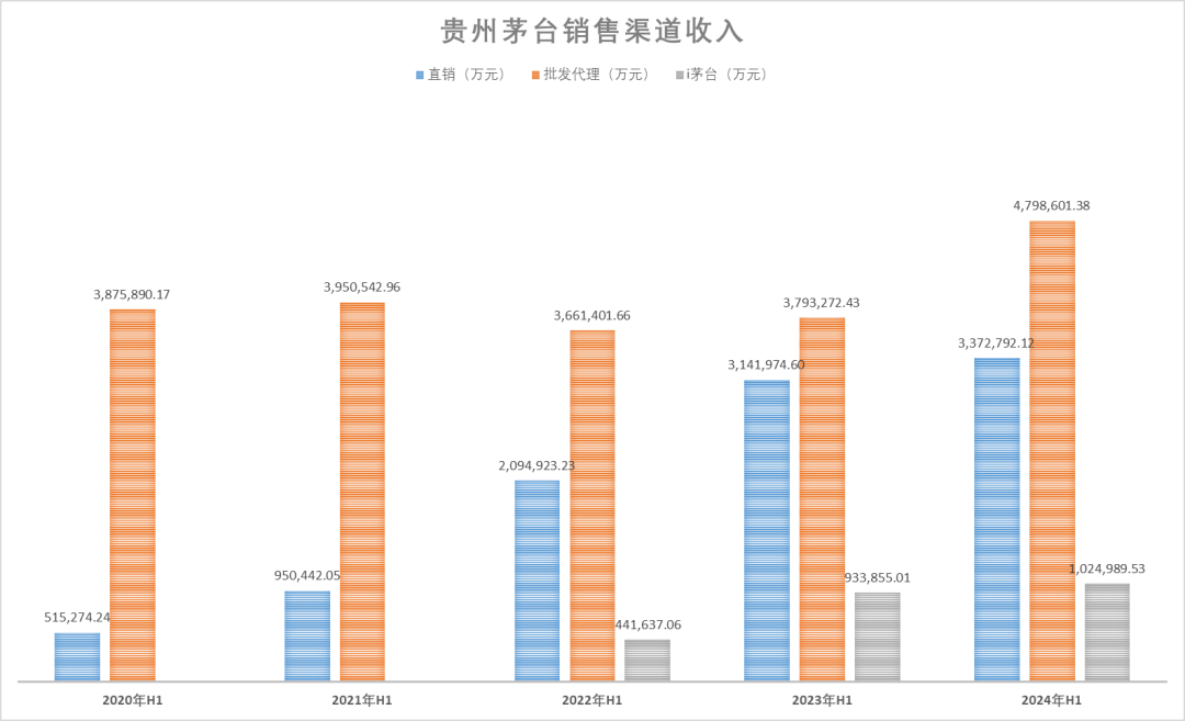 時(shí)代周報(bào)記者梳理貴州茅臺(tái)2020年以來半年報(bào)數(shù)據(jù)發(fā)現(xiàn),2021年-2023年,貴州茅臺(tái)直銷渠道收入一直保持高速發(fā)展,營(yíng)收增速分別為84.45%、120.42%、49.98%,營(yíng)收規(guī)模分別為95.04億元、209.49億元、314.20億元。