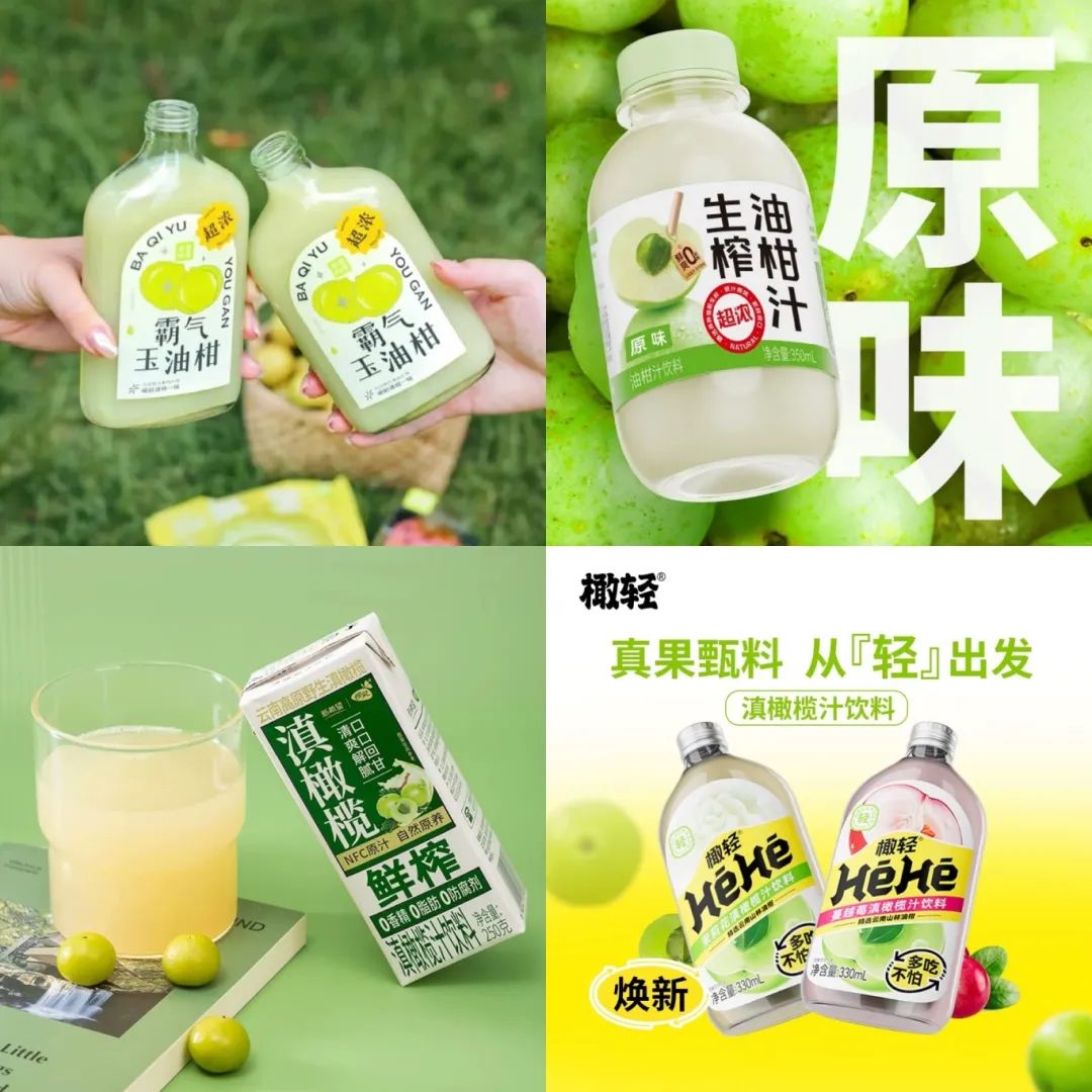 例如,奈雪的茶推出了新品——霸汽玉油柑,每瓶含66顆余甘子初榨原汁,號稱口感“3秒微澀,5秒回甘”,該新品一經(jīng)上市就獲得了眾多消費(fèi)者喜愛,并讓余甘子(橄欖)這種小眾水果成為熱門口味,東鵬飲料、新希望、橄清、帶橄、褚橙等數(shù)十家飲料品牌均推出了相關(guān)口味。