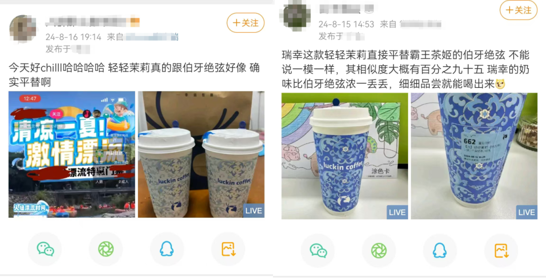 “飲品的競爭壁壘都不高,口味很容易模仿!逼凤媴R創(chuàng)始人任未希談到,之前是很多人關(guān)注到但沒有想到霸王茶姬的伯牙絕弦如此受歡迎,但隨著瑞幸推出輕輕茉莉讓這個(gè)口味一炮而紅,自然而然就會(huì)出現(xiàn)很多跟風(fēng)和相似口味的競品。